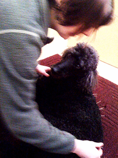 Every two weeks I receive a visit from a special visitor. Lou bounds into by office as soon as the door is open enough for him to squeeze through, and comes dancing over to me and the treat jar. However, as much as Lou loves his treats, he likes his acupuncture even better. As soon as he sees the needles come out he immediately sits down, positioning himself so I can easily put the needles in.