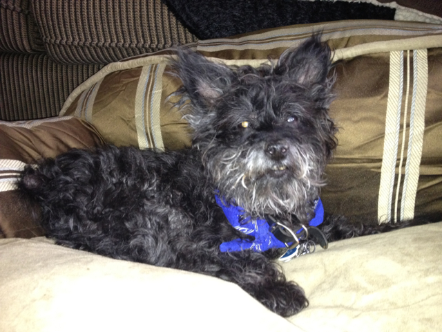 Casey is a sweet little old man, with greying whiskers and fuzzy black feet. He can still be quite feisty, after all he is a terrier. He likes his short walks down the block although sometimes they are more about sniffing than walking and sometimes he asks to be carried back home. He doesn’t hear and see like he used to anymore but he is well loved and cared for. He loves to snuggle with his mom and aunt and likes to eat with his family, preferring to eat what they are eating these days and that is perfectly fine.