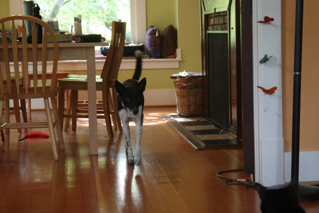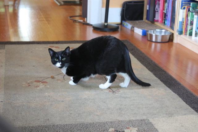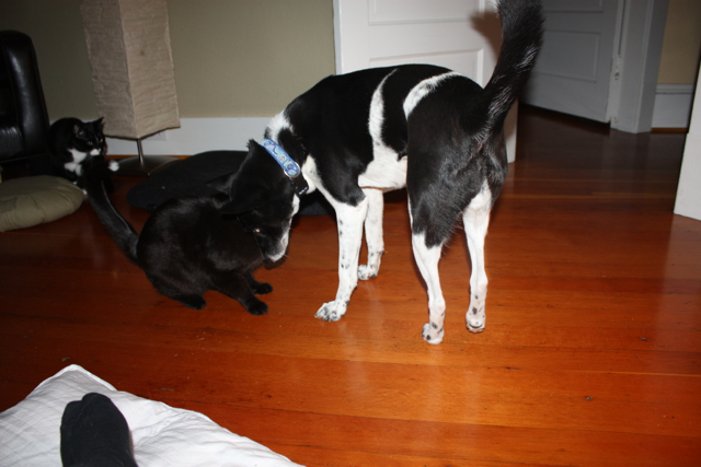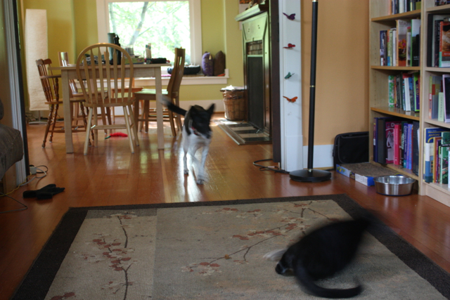 At first Luna wanted nothing to do with Astro. All he wanted was a playmate. But every time he approached her she would growl at him. The sound she made was very much like the sound Marge Simpson makes when she disapproves of something. We almost named her Marge because of this. But Astro persisted, and after about a week she accepted him as something to chase and wrestle to the ground, and then she allowed him to groom her, and then they began to snuggle and sleep together. And her disapproving growl evolved into the sweetest little peep. Thereafter, her nickname around our house became Miss Peep.